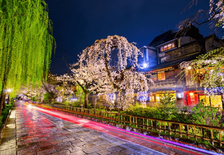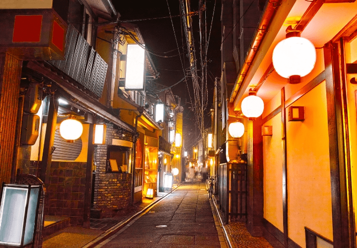 市内にはかつて4万軒以上の京町家があり、今も地域によっては伝統的な町並みが残っています。格子戸や石畳の路地が買い物や通勤の背景になり、歴史の中で暮らしている実感を味わうことができます。